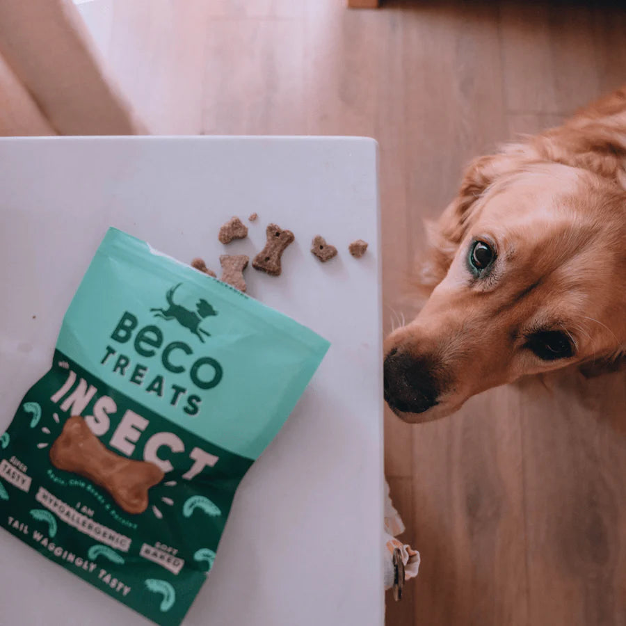 Tried and tested grub by Beco's canine colleagues, these biscuits passed with flying colours. Insects are hypoallergenic with a low carbon footprint when compared to other sources of meat protein. What’s more, they’re a source of digestible protein that dogs love to snuffle up, nature at its best. Beco have added a few extra ingredients; apple, chai seeds and parsley to make these treats even more irresistible. Pocket-sized and compostable packaging approved, ready to grab-and-go.